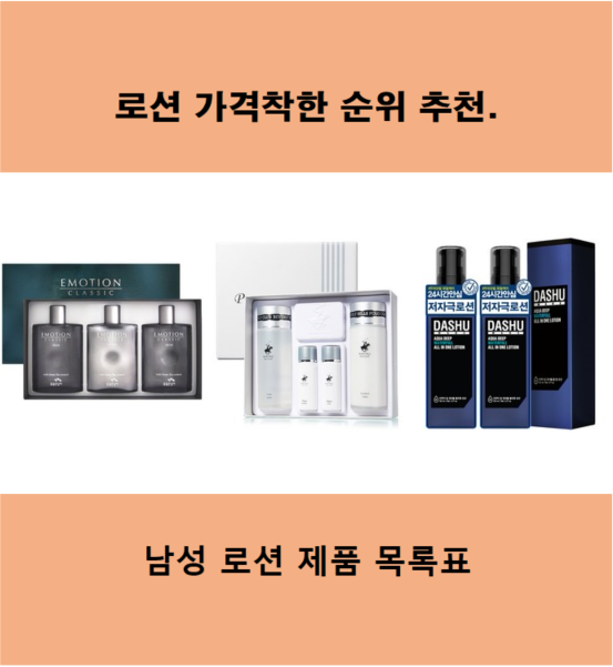 남성 로션 제품 목록표